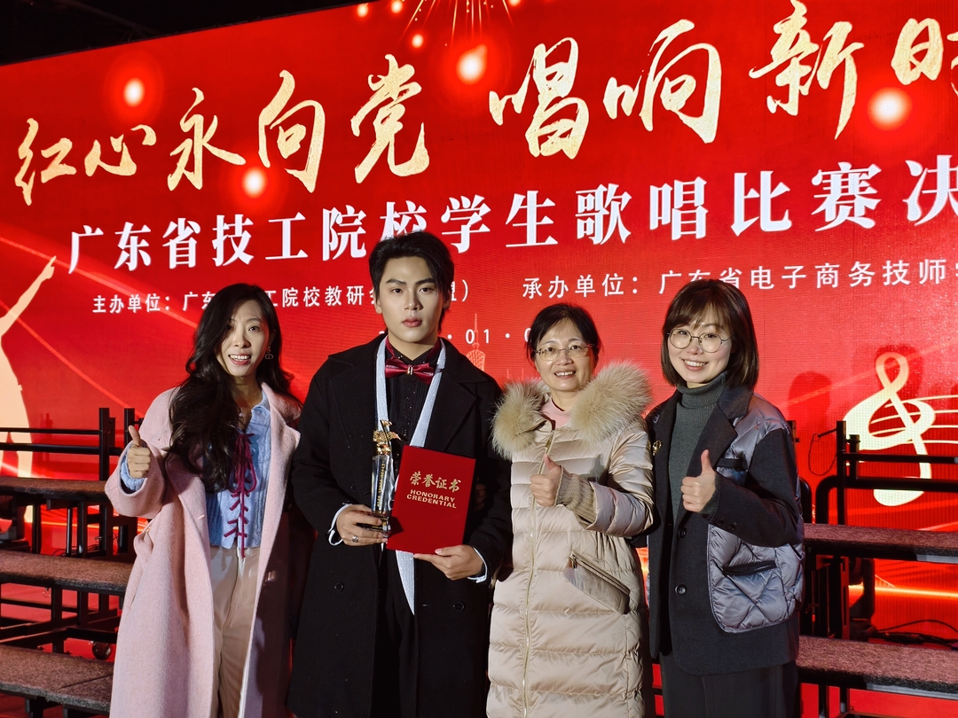 我院学子梁得海荣获省技工院校学生歌唱比赛一等奖 青春之声“绽放”决赛舞台 2026年1月7日晚,“红心永向党·唱响新时代”广东省技工院校学生歌唱比赛决赛圆满落幕