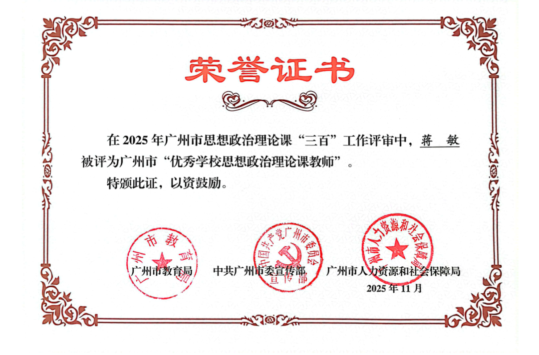 喜报!学院教师在第四届思想政治理论课“三百”工作 评审中斩获多项荣誉 在广州市教育局、中共广州市委宣传部、广州市人力资源和社会保障局联合举办的第四届思想政治理论