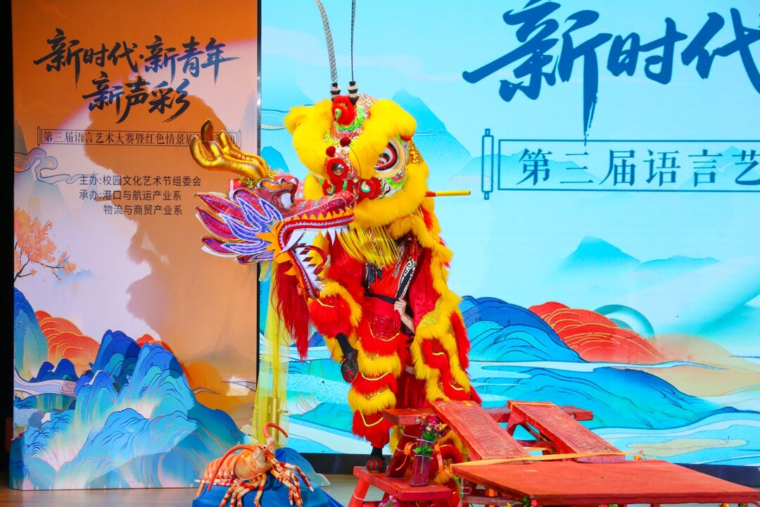 活动伊始,学院醒狮队表演《大圣闹海夺金箍》,队员身着狮服随锣鼓声起舞,刚劲灵活的动作极具感染力,迅速点燃现场氛围。随后,港口与航运产业系曾志海主任发表热情洋溢的致辞,曾主任指出本次活动是落实李强总理签署公布的《全民阅读促进条例》精神的具体实践。语言艺术是中华优秀传统文化传承的核心载体,红色情景剧是赓续红色血脉的重要形式,希望同学们借活动体悟语言魅力,在红色故事浸润中筑牢家国情怀,将个人成长与国家发展紧密相连,传承红色薪火。