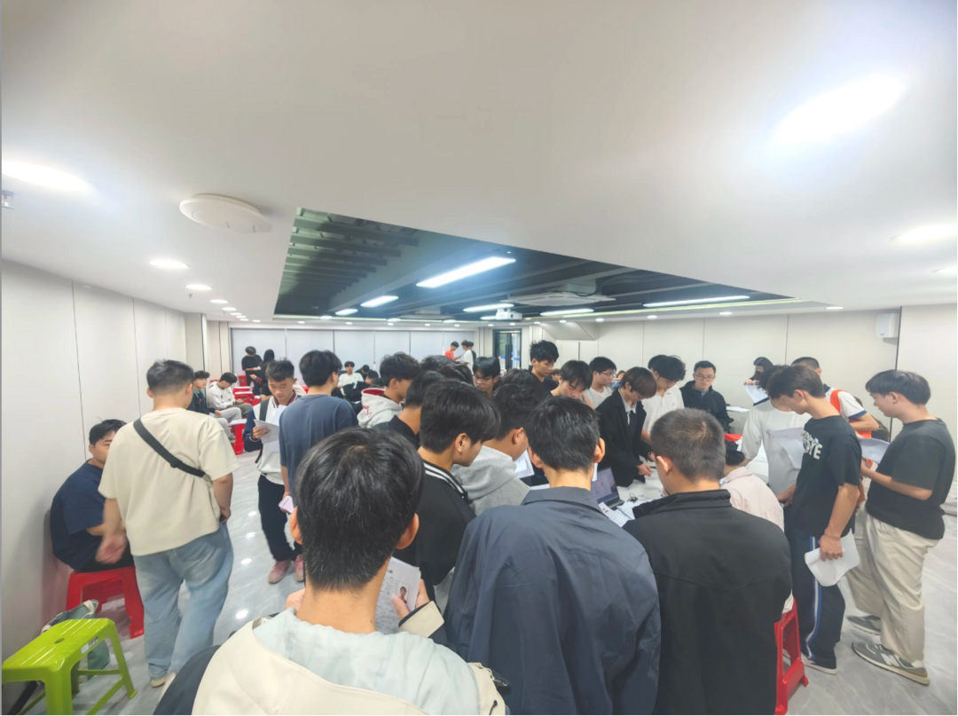 精挑细选聚英才,整装待发赴实践。为保障实训质量与岗位适配度,项目建立了层层递进的选拔体系:首轮在校内开展企业专场面试,33名学生凭借扎实的专业认知与积极的求职态度顺利通关;随后,入选学生统一前往东莞松山湖华为南方基地进行全面体检,严格筛查身体状况,确保符合生产线岗位健康要求;最后,通过企业定制化培训与专项笔试,重点考核学生对电子制造基础常识、安全规范的掌握程度,最终29名学子以优异表现脱颖而出,获得实训资格。