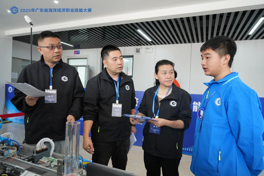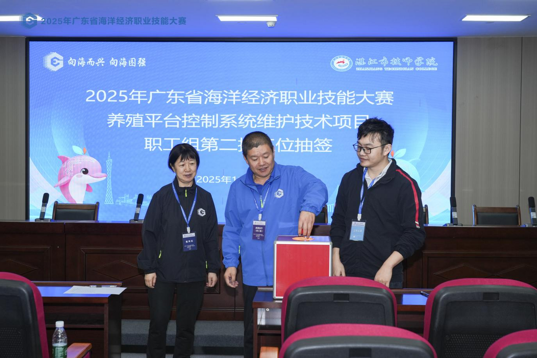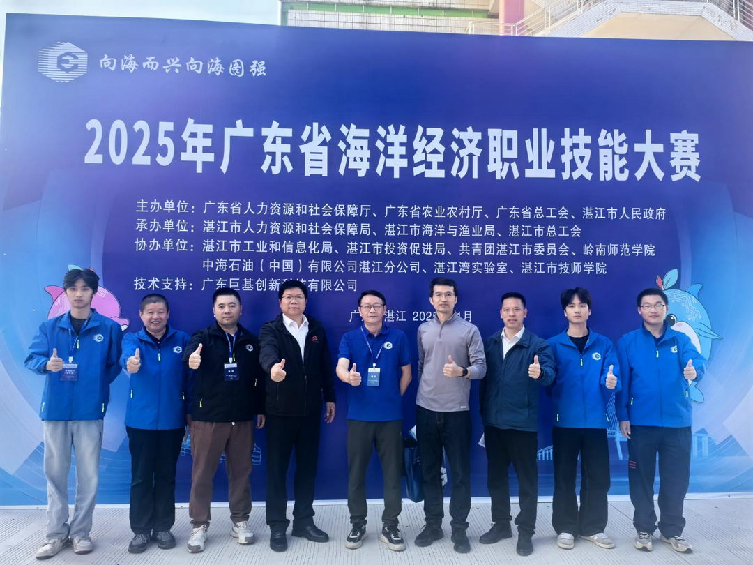 11 月 26 日至 27 日,以 “向海而兴 向海图强” 为主题的 2025 年广东省海洋经济职业技能大赛在湛江市技师学院正式开赛。作为聚焦海洋经济领域技能人才培育的省级重磅赛事,本次大赛吸引了全省各地多支顶尖队伍同台竞技,我校职工张国立带领学生程鸿斌、郑超、李伟杰组成参赛团队,征战 “养殖平台控制系统维护技术” 赛项,凭借扎实的专业功底和出色的临场发挥,最终斩获亮眼成绩 —— 学生组郑超以精准高效的操作荣获第七名,程鸿斌凭借稳定发挥拿下第十五名,二人双双斩获优胜奖,为学校赢得荣誉。