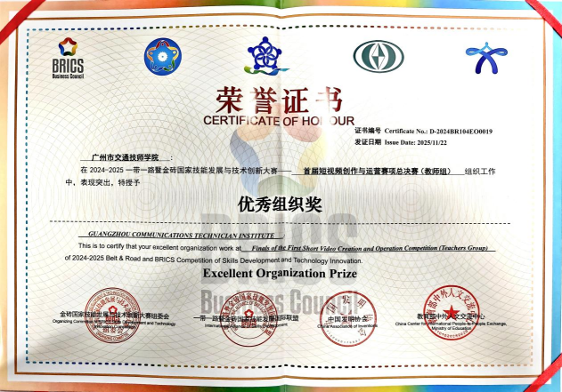 喜讯:我院师生在2025一带一路暨金砖国家技能发展与技术创新大赛 ——首届短视频创作与运营赛项国际总决赛取得优异成绩 2025年11月20日,由金砖国家工商理事