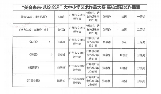喜讯:热烈祝贺我院师生在“美育未来・艺绽全运”大中小学