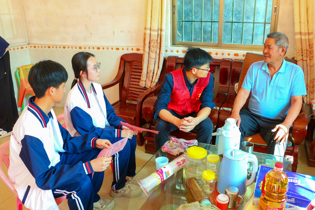 志愿者为老人送上慰问品、排查用电风险隐患和清扫庭院