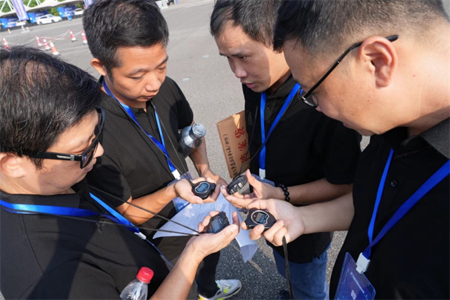 比赛前裁判们进行对表