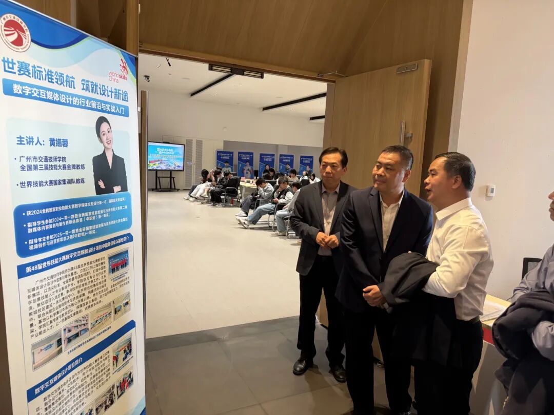 本次培训特邀中华人民共和国第三届职业技能大赛数字交互媒体设计金牌选手指导教练、学院优秀教师黄嬿蓉主讲。培训以第48届世界技能大赛新增赛项为风向标,紧紧围绕“技能接轨、素养提升、职业赋能”三大目标展开,深入解读世赛考核标准与职场需求的关联,拆解国赛金牌案例,展现从创意构思到技术实现的全流程。广州市人力资源和社会保障局一级调研员(市管干部)杨庆华带队到培训现场参观,对学院技能培训工作给予充分肯定。