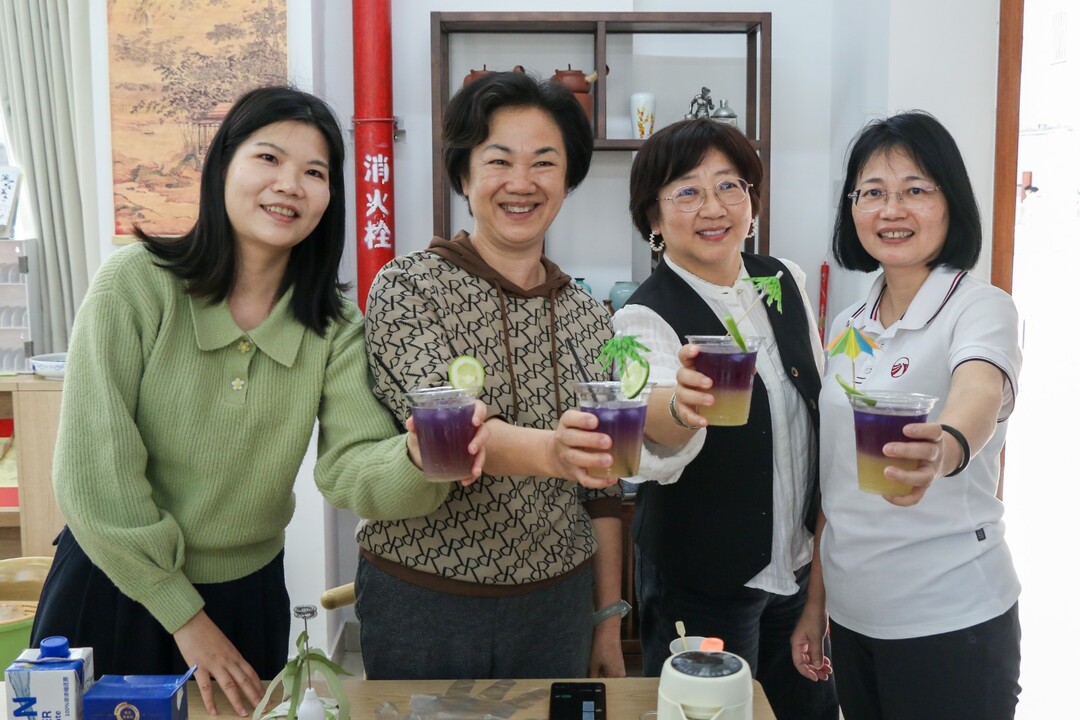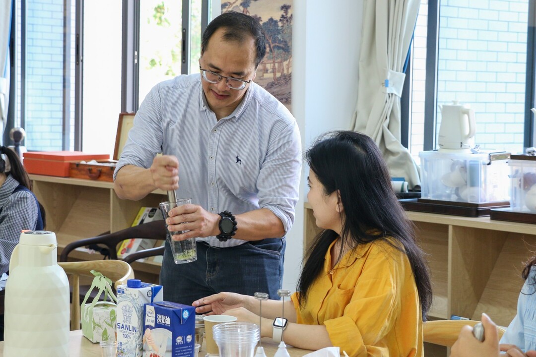 茶歇交流环节中,教工们围坐品尝自制调饮茶作品、畅谈交流制作心得,在轻松愉悦的气氛中舒缓工作、学习压力,增进同事情谊,营造和谐融洽的校园文化氛围。