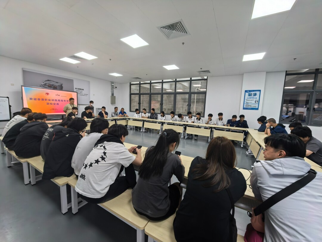 研学次日,学员们走进广州元丰广汽丰田4S店,系统观摩销售服务、维修车间管理及零配件供应体系,对汽车后市场的规范化运营有了直观而深入的理解。在广州市交通技师学院科教城校区,第45届世界技能大赛中国代表团旗手、学院重型车辆维修专业教师莫镇安与香港学子展开对话,以亲身经历诠释“技能报国”的深刻内涵。两地学生更围绕重型车辆维修技术与设备实操进行了深度交流,在切磋中见证内地技工教育的高水平与高标准。