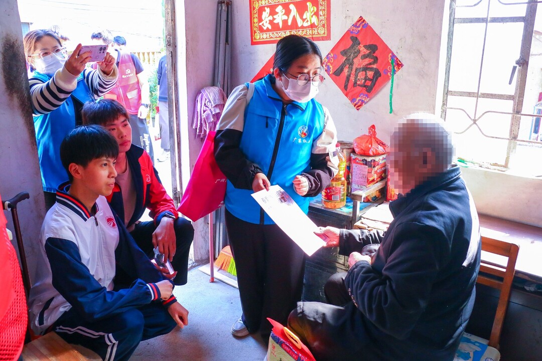 志愿者们来到山田村京山祠堂路的村民家中,开展了一系列温馨且有序的服务工作。志愿者们分工协作,有的为老人送上慰问品,与老人促膝长谈,细致询问其身体状况与生活需求;有的化身安全卫士,利用专业所长,仔细排查老人家中的各类安全隐患;还有的主动拿起清洁工具,为老人打扫房屋、清理庭院。志愿者们不仅为独居老人送去了实实在在的生活用品,解决了其生活中的实际难题,更以真诚的陪伴和暖心的交流,为老人们带来了精神上的慰藉,让独居老人们深切感受到来自学院和街道的关怀与温暖。此外,志愿者们还结合当下季节特点,为老人们宣传普及流感预防相关知识,用专业且通俗的讲解,为老人的健康筑牢防护屏障。