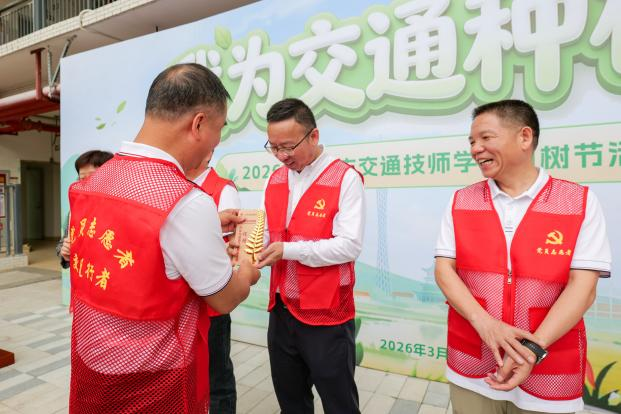 春风拂沃野,植绿正当时。3月27日,广州市交通技师学院在科教城校区举行2026年“绿美校园,我为交通种棵树”植树活动。本次活动以党建带工建、党建带团建,凝聚全体党员、团员和工会会员,通过自愿捐赠、亲手栽种的形式,在校园内共建一片“交通荔园”。全院师生以实际行动践行习近平生态文明思想,用汗水浇灌绿色希望,为美丽校园再添新景,让“绿水青山就是金山银山”的理念在科教城校区落地生根。
