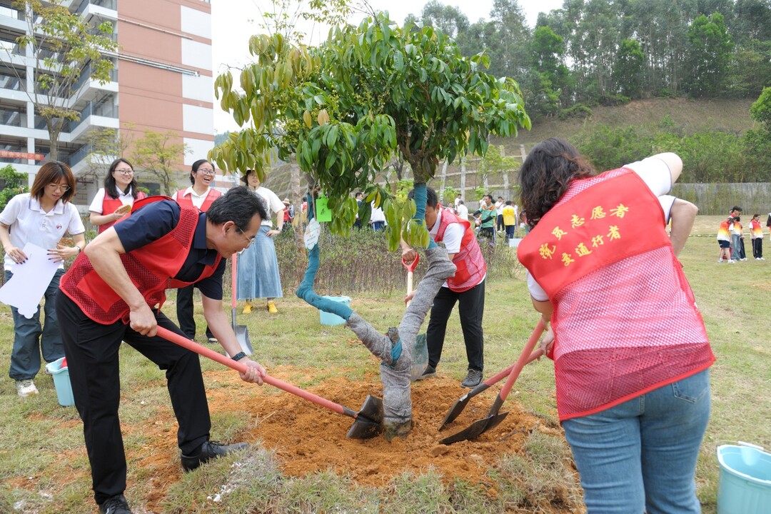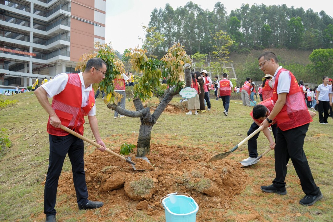 学院党委副书记、院长梁登为活动致辞,他指出,建设绿美校园,不仅是美化环境、提升品质的现实需要,更是以环境育人、以文化润心,培育担当民族复兴大任时代新人的长远之举。希望全体师生:一是提高站位,做生态文明的坚定传播者,将生态文明教育融入教育教学全过程;二是躬身实践,做绿美校园的主动建设者,精心管护、长久守护,确保“栽一棵、活一棵、成一片”;三是厚植情怀,做匠心育人征程的奋力开拓者,将绿色理念与工匠精神融入育人全过程,以青春之我助力绿美广东。