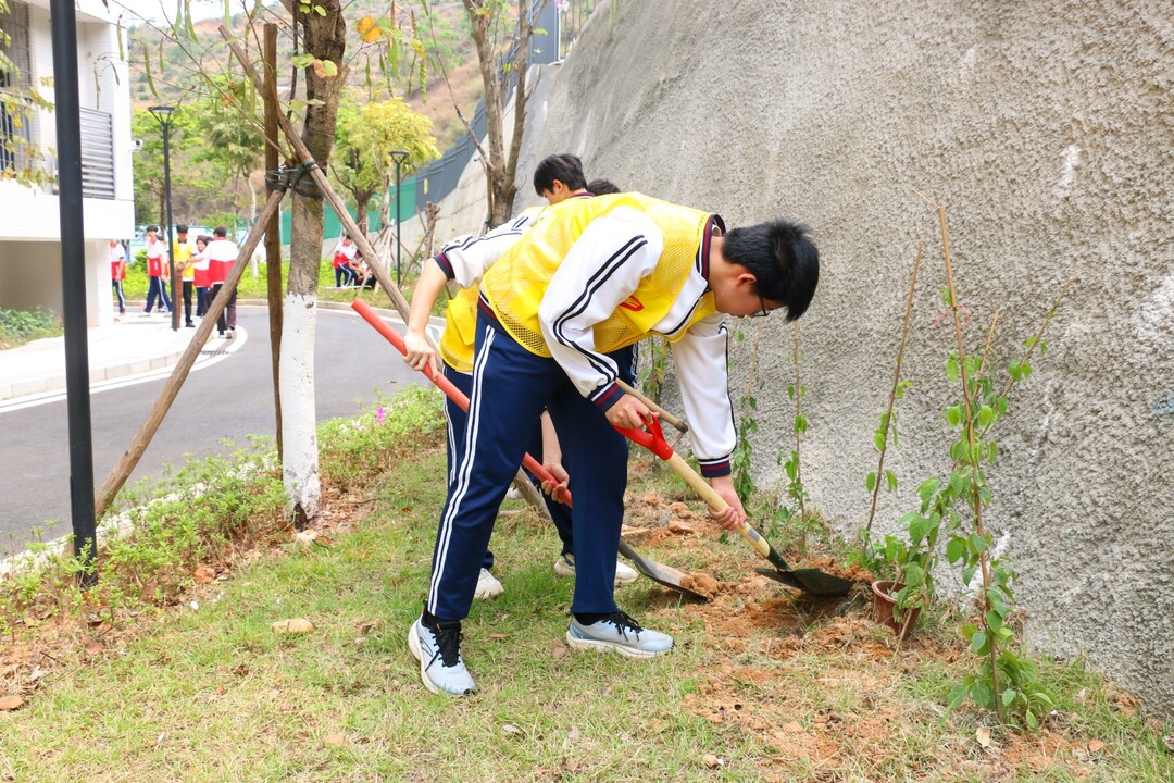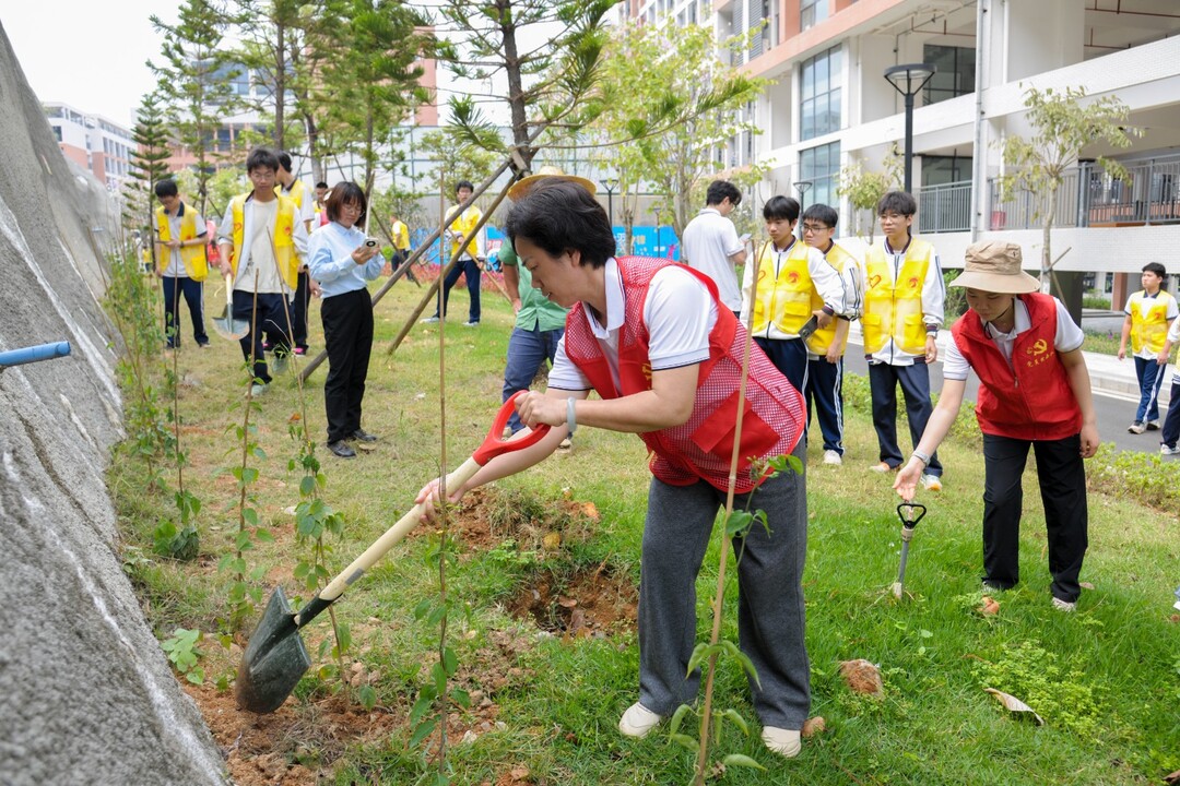 一株新苗,一锹厚土,一瓢清水,种下的是希望,承载的是未来。此次活动不仅为校园增添新绿,更让生态文明理念在劳动实践中扎根。未来,学院将持续以党建为引领,深化生态教育,推动“绿美校园”与人才培养深度融合,为“绿美广东”贡献交通力量。期待来年荔园成荫炮仗花红,共绘人与自然和谐共生的美好画卷!
