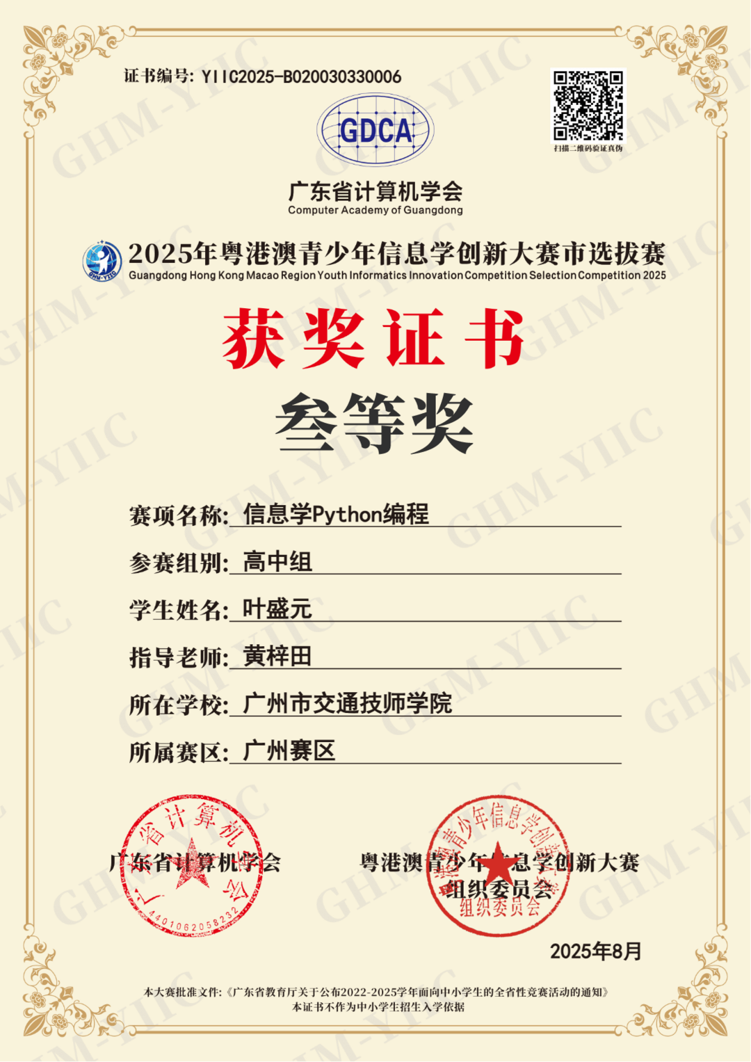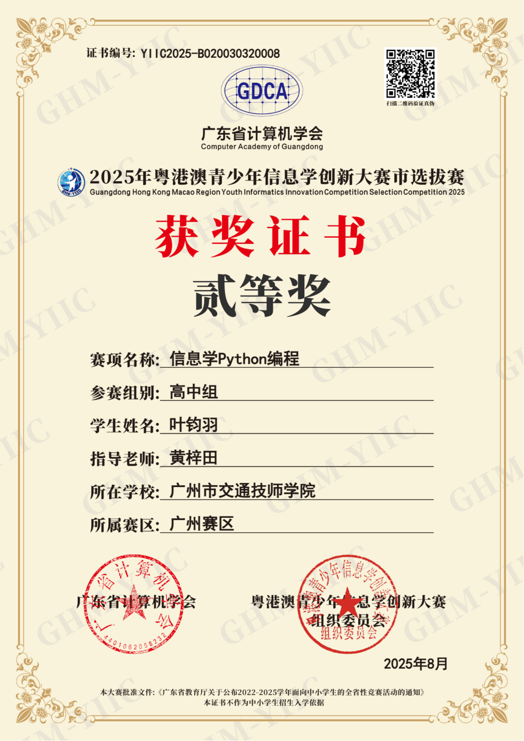 2025年粤港澳青少年信息学创新大赛市选拔赛
